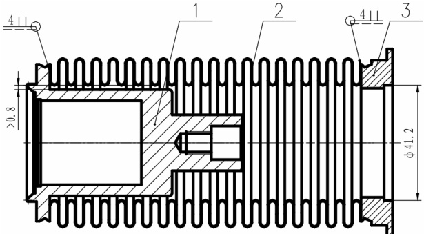 本文以单层无缝成形波纹管为例进行分析,波纹管组件结构如下所示。
