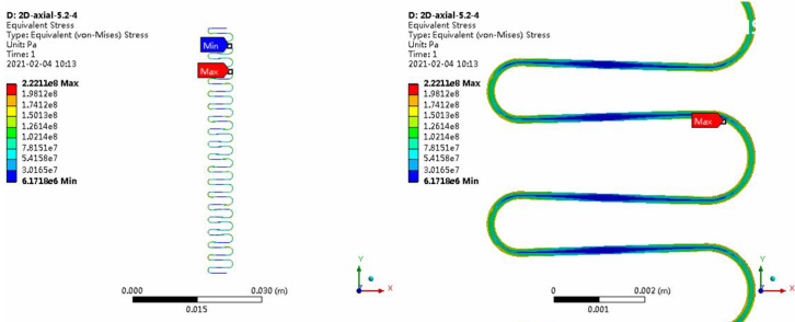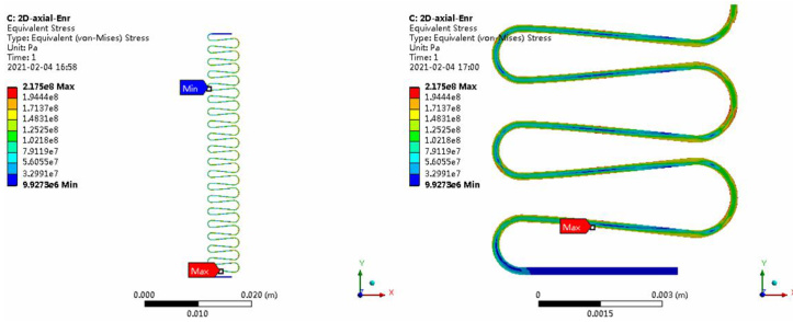 极限工况下,波纹管轴向压缩17mm 时的von-Mises 应力见下图。