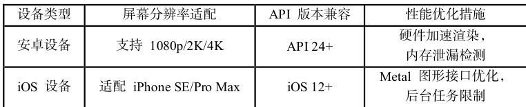 当前市场上移动 App 主要为 Android、iOS 版本,为确保以上方案避免因兼容性问题导致安全防护机制失效,需提升方案兼容性。在多平台适配方面,可采用设备碎片化处理策略,具体参数如表 2 所示: