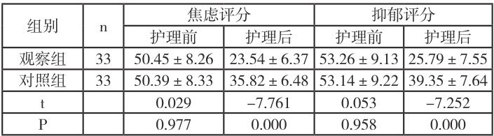表1 两组患者心理状态比较(