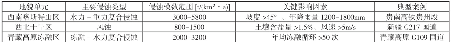 (3)公路建设改变青藏高原冻融环境:路基吸热使周边 50m 范围内土壤年冻融循环次数从自然状态的 35 次增至 58 次,裂隙发育密度提高 1.8 倍,为水力侵蚀提供优先流通道。