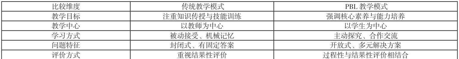 (2)以学生为中心:在 PBL 模式下,学生成为学习的主体,自主负责问题探究过程;教师则转变为指导者、促进者和资源提供者,为学生搭建适当的学习支架。(3)以合作探究为主线:PBL 强调学习共同体的建设,学生通过小组协作、讨论交流、资源共享等方式,共同建构知识网络,发展社会性技能。