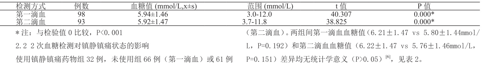 2.1 第一滴血与第二滴血血糖检测结果比较