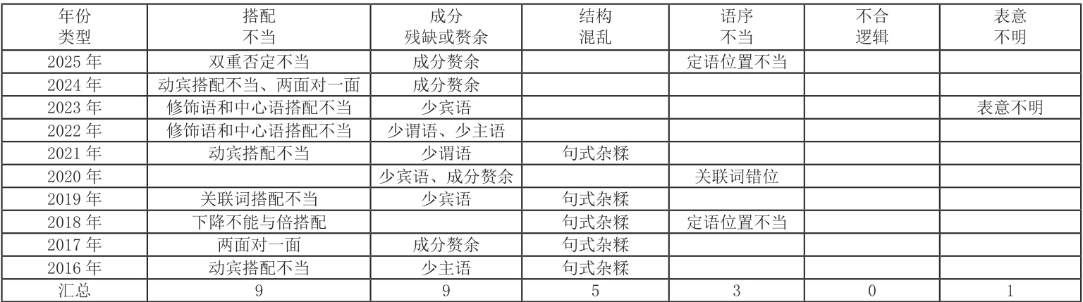 2. 广东语文“ 3+ 证书”考试近十年真题病句辨析考情分析
