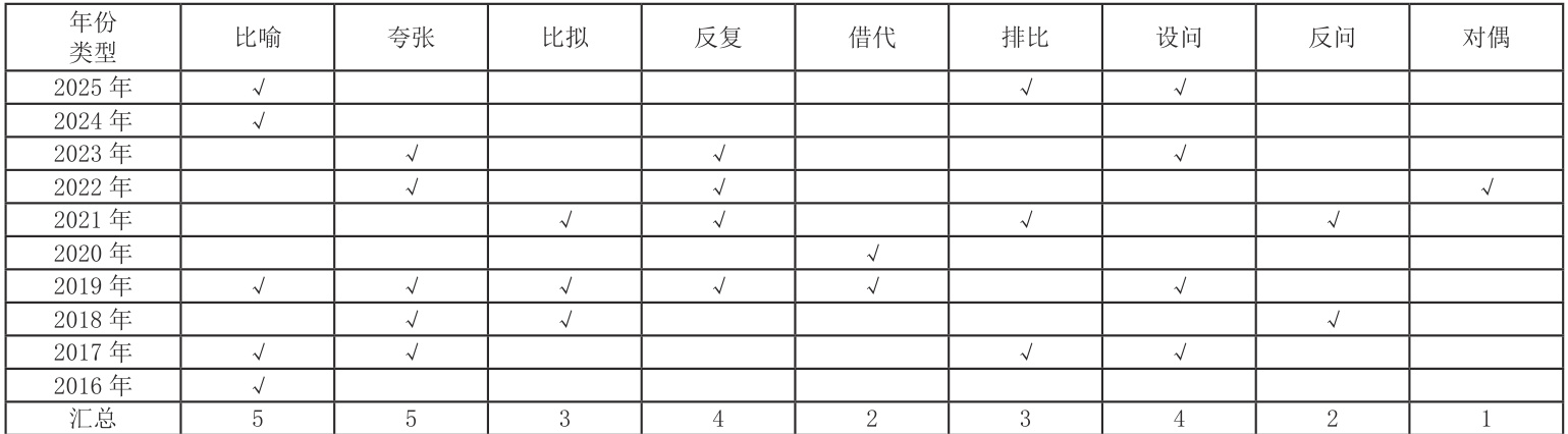 2. 广东语文“ 3+ 证书”考试近十年真题修辞手法考情分析