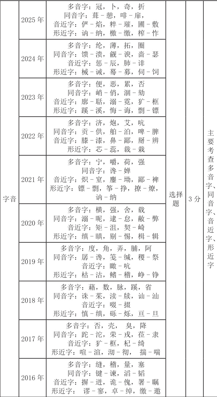 2. 广东语文“ 3+ 证书”考试近十年真题字音考情分析