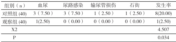 选取 2023 年 1 月 -2024 年 1 月在我院接受输尿管软镜治疗的 80 例肾结石患者。采用随机数字表法分为观察组和对照组,每组40 例。