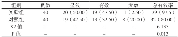 实验组疗效优于对照组, P<0.05 。见表 1