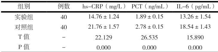 对比炎性水平,超敏 C 反应蛋白(hs-CRP)、降钙素原(PCT)、白细胞介素 -6(IL-6)水平。