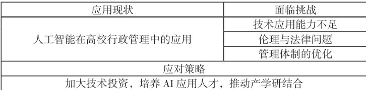 表1 :人工智能在高校行政管理应用现状及挑战概述