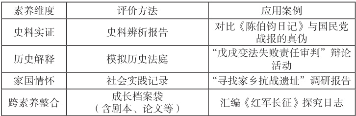 (一)核心素养内涵与评价维度。历史学科五大核心素养需转化为可观测的评价指标: