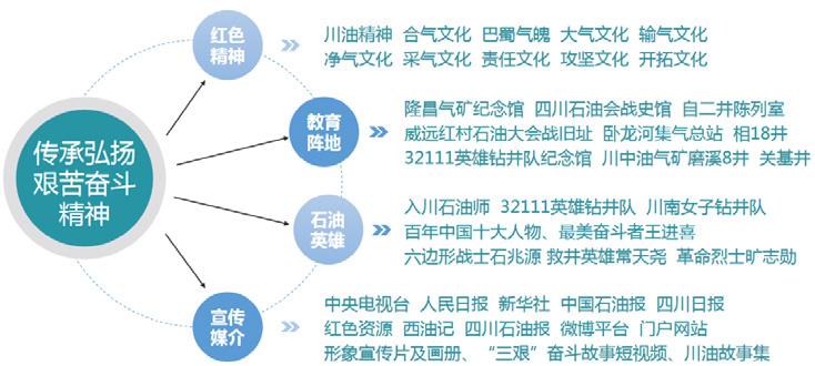 讲好西油故事,唱响团结奋斗主旋律。发挥全媒体力量,运用“网、微、报、台、音、刊”等多样化的宣传阵地,通过形象宣传片及画册、“三艰” 奋斗故事短视频、川油故事集等形式,全景式展示新时代优秀石油战斗群体良好精神面貌,着力宣传公司贯彻落实艰苦奋斗精神的鲜明立场、 有力举措、成效经验和政研成果。秉持开放性视野,资源联动,多方共建艰苦奋斗精神的跨域联动传播矩阵,积极推进与地方政府、属地部门、 主流媒体、合作企业的沟通协调,将公司弘扬艰苦奋斗精神、履行国家能源安全战略使命、创造企地共享价值等内容向社会各领域渗透转化, 进一步提升公司影响力、知名度、美誉度。