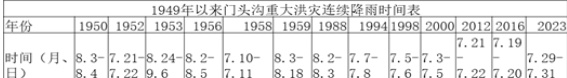 表 11949 年以来门头沟重大洪灾连续降雨时间表