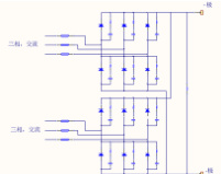 本方案针对发电机为双绕组永磁同步发电机。整流装置电气原理设计为两组典型的三相不可控整流桥拓扑电路并联。电气原理图 1 如下所示: