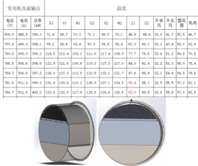 优化前整流装置和发电机进行联机试验。试验测量的温度数据见表 1,三维模型见图 4 表 1 优化前整流装置与发电机温度试验数据