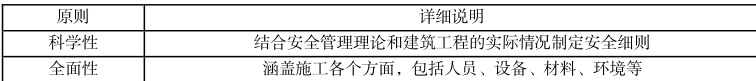 表 1 安全细则的制定原则