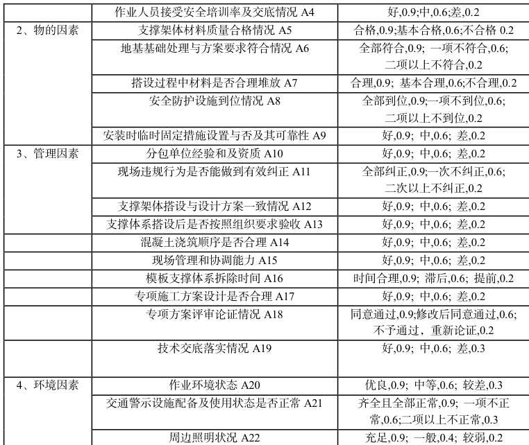 2、模板支撑体系施工坍塌事故风险指标体系的建立