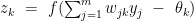 (3)根据隐含层各节点的输出值 yj 、隐含层到输出层的连接权值 Wij 和输出层节点的阀值 θk 可得到输出层神经元的输出公式:
