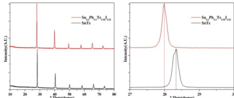 3.Sb、Bi 元素掺杂及性能调控:对制备的 n 型 Sn1-x-y/2Pbₓ+y/2Te1-y/ly 样品,按实验设计进行 Sb、Bi 元素掺杂,重复原料称重、制备、测试流程,研究掺杂对样品热电性能的影响规律,调控掺杂组分,制备高性能 n型SnTe 基热电材料。