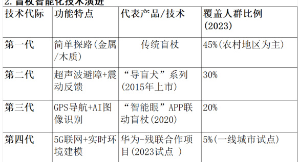 图片3 盲杖智能化技术演进(数据来源:中国残疾人辅助器具中心、工业和信息化部(工信部)、商业财经数据库)