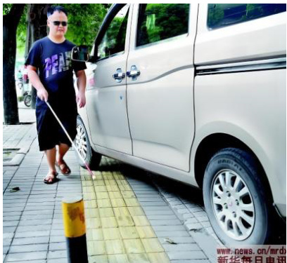图4 机动车占盲道(图片来源:新华网)