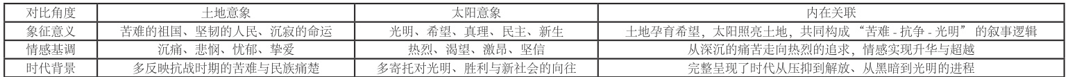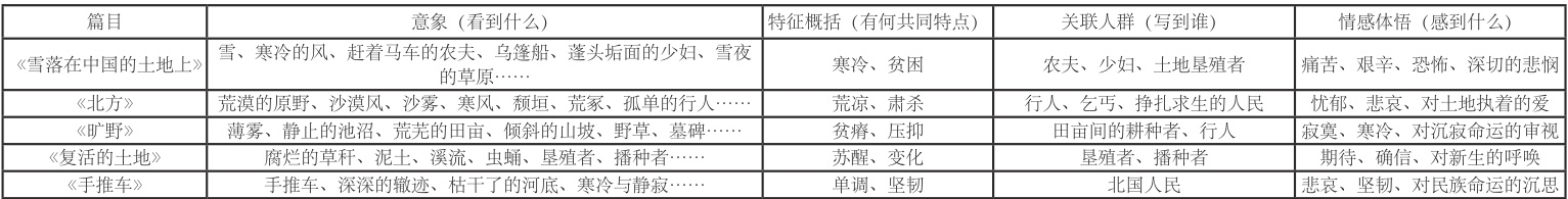 完成表格后,教师还需引导学生纵向与横向对比分析,把握诗中的关联人群与 “土地”意象的关系,把握特征与情感 之间的对应关系,从而深入理解土地意象。