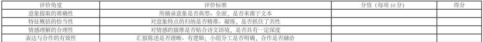 为保证报告质量,教师还要出示 “意象主题研究报告评价量表”,从意象分析的深度、主题阐释的清晰度、语言表达的逻辑性等方面进行多维度评价,实现 “以评促学、以研促教”的良性循环。