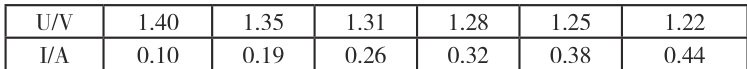 第1 步按电路图连接电路, 电流表选择0-0.6A 量程,电压表选择0-3v 量程,滑动变阻器的滑动片要放置在接入电路阻值最大的位置。第2 步闭合开关,调节滑动变阻器,使电流表有明显示数,读数,断开开关,记录电流表、电压表的示数(I1、U1)。第 3 步闭合开关,调节滑动变阻器,重复上述操作,测量并记录6 组U、I 值。第4 步断开开关,整理好器材
