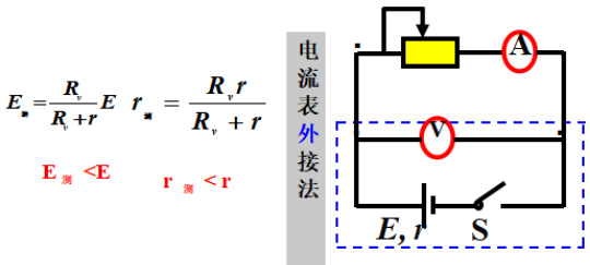 把电源和电压表看成一个整体,这样测得的就是这个整体的路端电压和通过这个整体的电流,计算出的就是这个整体的电动势和这个整体的内电阻。这个整体的电动势相当于开路时电压表所分得的电压,整体的电阻相当于电源和电压表并联的阻值。