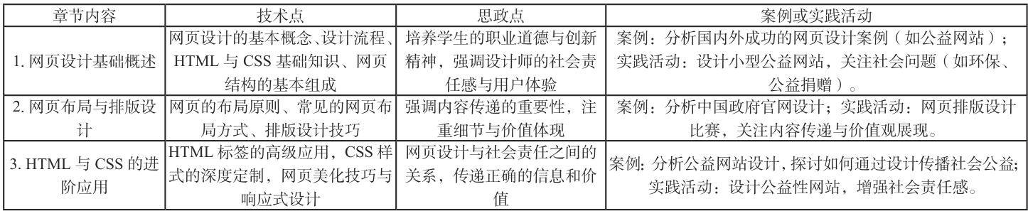 三、《网页设计与制作》课程中的思政教育设计