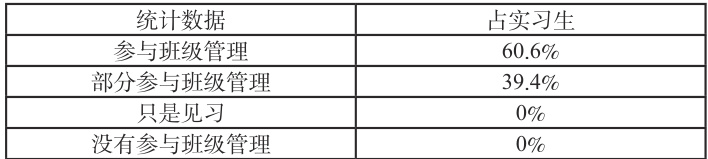 幼儿园主班是学生、家长和其他老师之间沟通的桥梁,带班实践工作对实习生提升专业水平有很大帮助。关于带班实践体验工作的调查结果表明:占实习人数 60.6% 的实习生参与了班级管理,剩余 39.4% 的实习生表示部分参与了班级管理。具体见(表3)