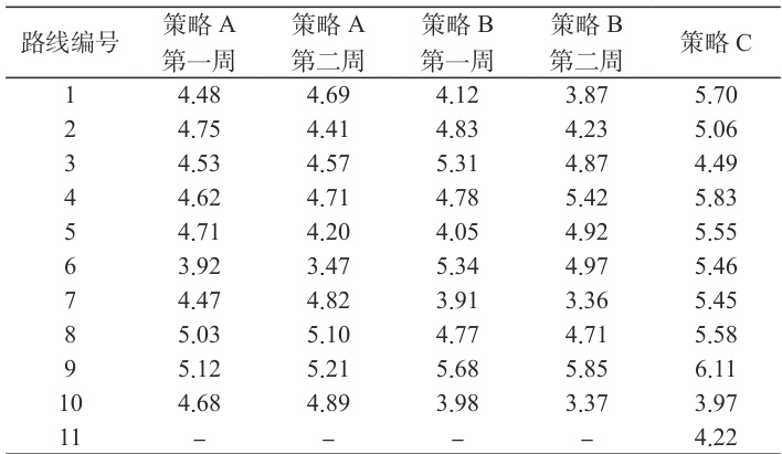 表2 部分线路不同策略的工作时间