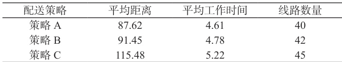 从两周配送线路规划的全局指标来看,策略A 在三者中表现最优: