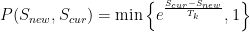 其中, Scur 表示当前解, Snew 表示候选可行解, T 是常数,表示当前的温度。