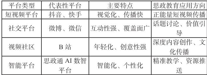 表1. 新媒体平台在思政教育中的应用现状与特点