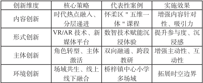 表2. 青少年思政教育创新路径的核心维度与策略