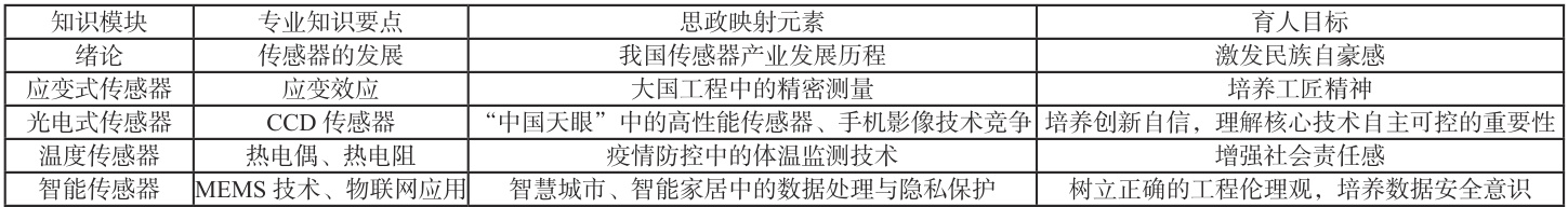 表1 《传感器原理与应用》课程思政元素映射表