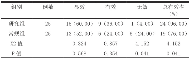 研究组患者的治疗效果更高( p<0.05 ),详情见表2 所示