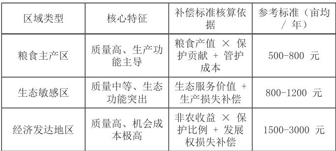 动态调整:每 3-5 年根据经济水平、耕地质量变化更新标准,避免机制僵化。