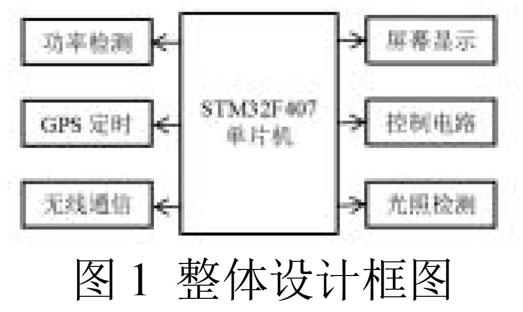 供电部分采用额定电压12V,额定电流167mA 的太阳能发电板,能量流向LM2596 模块,经过LM2596 模块降压为5V 后给锂电池供电,最后由锂电池给整个电路供电,电源数据的采样和检测有INA219 完成,将其检测脚直接连接至10 毫欧电阻的两端后,由芯片内部完成模数转换,将采集到的电压、计算后的电流数值进行模数转换,并通过乘法器求出功率数值,分别将三个参数存入其内部的三个寄存器内。STM32 为系统的主控芯片,通过IIC 总线,将INA219 所采集和计算的电压、电流和功率值取出,并控制LCD 将其显示。