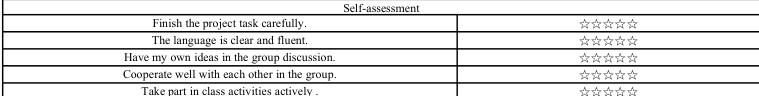 在展示项目成果之后,组织学生对成果进行收集和整理,组织学生评选出表现最佳的项目小组,对他们的努力和成就进行公示与表彰。这一过程不仅是对学生项目成果的认可,也是对他们未来学习旅程的激励。随后,引导学生进行深入的反思与总结。设计以下评价表来帮助学生反思这次项目学习的得失。