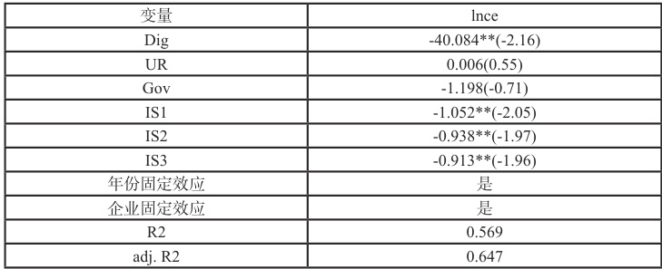 Dig 的系数为 -40.084,在 5% 的显著性水平上表现为负向。表明数字经济与碳排放显著负相关:数字经济发展提升,碳排放显著下降。如数字化平台优化资源配置、人工智能提升能效,验证其在低碳发展中的关键作用。