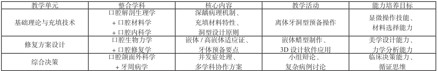 以临床需求为导向,借鉴混合教学模式的成功经验 [2-6],致力于构建以疾病为主线的整合式教学模式。该模式打破学科壁垒,将口腔解剖生理学、口腔材料学、口腔内科学和口腔修复学等课程内容重构,通过病例驱动教学、数字化技术赋能和人文素养浸润三大路径,实现知识传授与能力培养的深度融合,为培养兼具临床技能、科研思维和人文关怀的复合型口腔人才提供新方案。