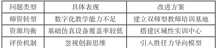 整合式教学模式通过学科壁垒打破、数字技术赋能、人文价值浸润三大创新,有效解决了传统口腔医学教学中理论与实践脱节、技能训练碎片化、人文教育薄弱等问题。但在实施中仍面临一些挑战,见表2。