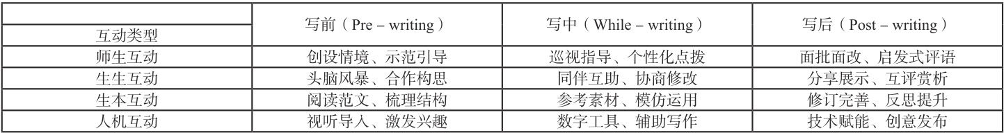 互动式写作教学贯穿写前、写中、写后全过程,其应用框架如下: