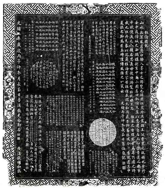叙伦园石屏风记述了同治十一年壬申岁(1872 年)四川广汉人张智元(字慧伯)在城西郊区修建了一处以家宅为主体的园林(别业),于光绪二年丙子岁(1876 年)仲冬月长至日(冬至日)落成搬入,邀请其弟弟、女婿、侄子、外侄(妻子的侄子)等亲戚撰写诗词,并刻石留念。