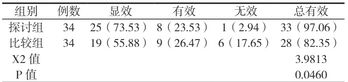 如表1 所示,探讨组麻醉效果明显优于比较组, P<0.05