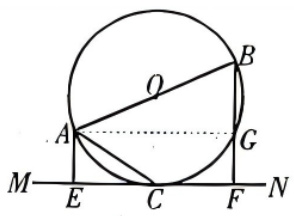 解析: ① 连接 CO,易证出 AC 平分 ∠ BAE; ② 连接 OC,先利用 AE、BF 都垂直于 MN,而