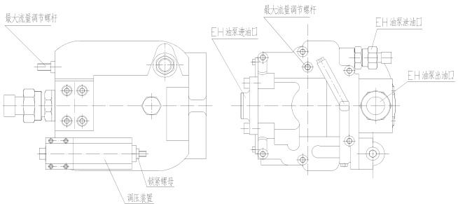 当调定泵出口压力后 (7-25MPa 之间 ),EH 油系统就将在此压力下工作,并能保持恒压,压力波动值不会超过 ±0.2MPa 。其输出流量可根据系统需要自动增加或减小。但流量超过设定值后,其出口压力会因流量增大而不规则减小。如:设定流量 60L/min ,则出口流量超过 60L/min 后,泵的出口最大压力或工作压力随流量的增加而不规则减小。