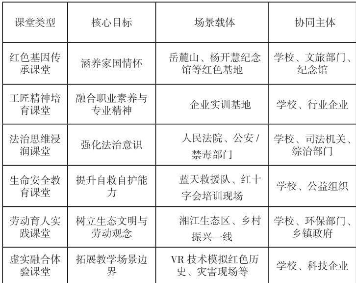 党的二十大以来,思政课作为立德树人的关键课程,其改革创新被提升至国家教育战略高度。教育部《全面推进“大思政课”建设的工作方案》明确提出,要“拓展课堂教学内容、创新教学手段”,推动思政教育“向实践场景延伸、向社会资源借力”。以湖湘文化为根基推进“两个结合”,通过“我的韶山行”“芳草计划”等项目打造“湖湘红”沉浸式基地矩阵,为“行走思政课堂” 的实践探索提供了鲜活样本。本文“行走思政课堂”实践教学新范式突破传统课堂物理边界,以场景化、体验式教学为核心,将红色资源、企业实训、法治场景等社会场域转化为育人载体。这种范式既响应了习近平总书记“大思政课,我们要善用之”的重要指示,也契合了陶行知“社会即学校”的教育理念,成为破解思政课“理论与实践脱节”困境的重要路径。